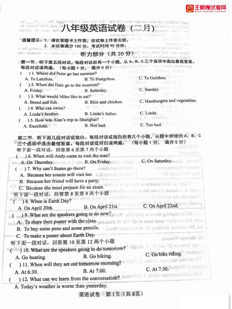 辽宁省鞍山市铁西区2022-2023学年下学期2月月考试卷八年级英语(人教版)