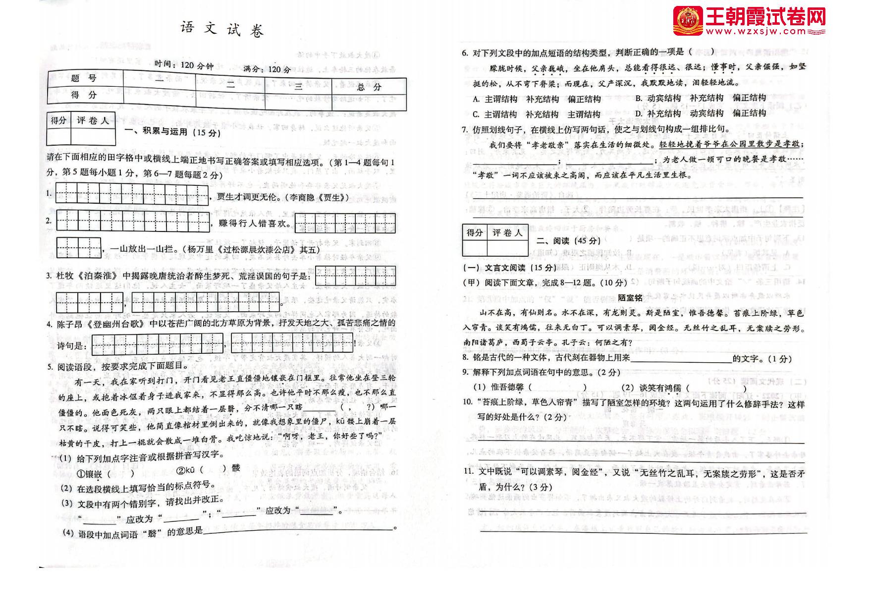 吉林省松原市宁江区三校联考2022—2023学年下学期第三次月考七年级语文(人教版)