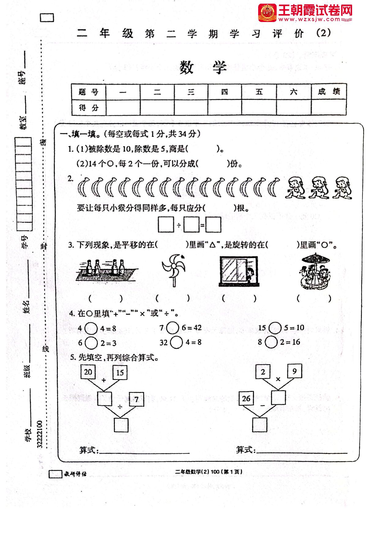 河南省南阳市唐河县2022—2023学年下学期期中学习评价二年级数学(人教版)