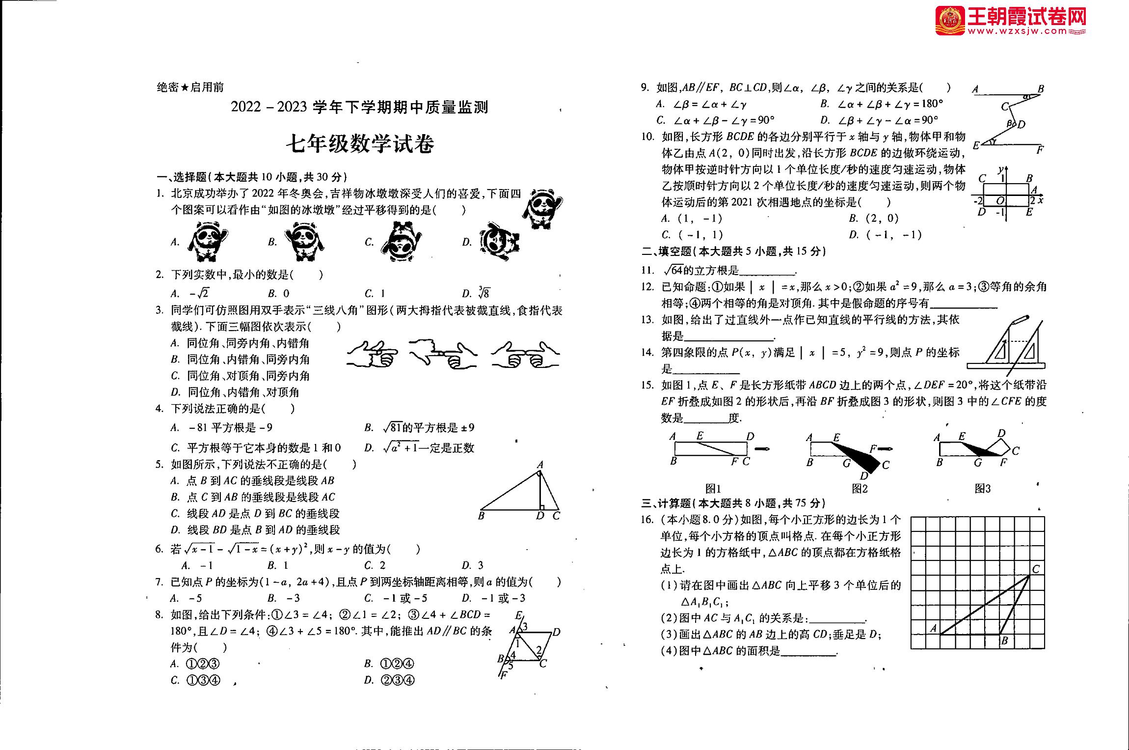 河南省洛阳市伊滨区、瀍河区2022—2023学年下学期期中质量监测试卷七年级数学(人教版)