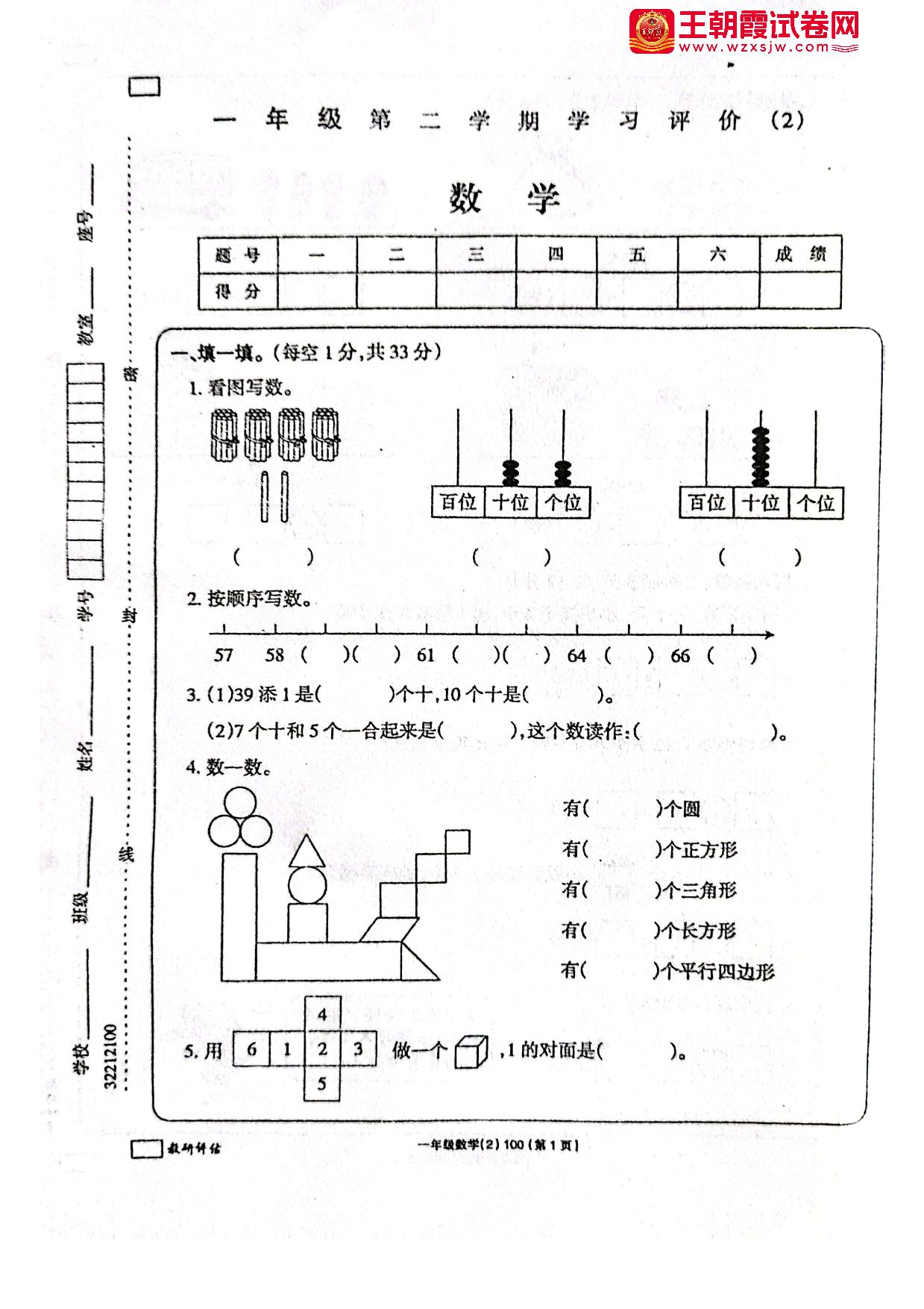 河南省南阳市唐河县2022—2023学年下学期期中试题一年级数学(人教版)