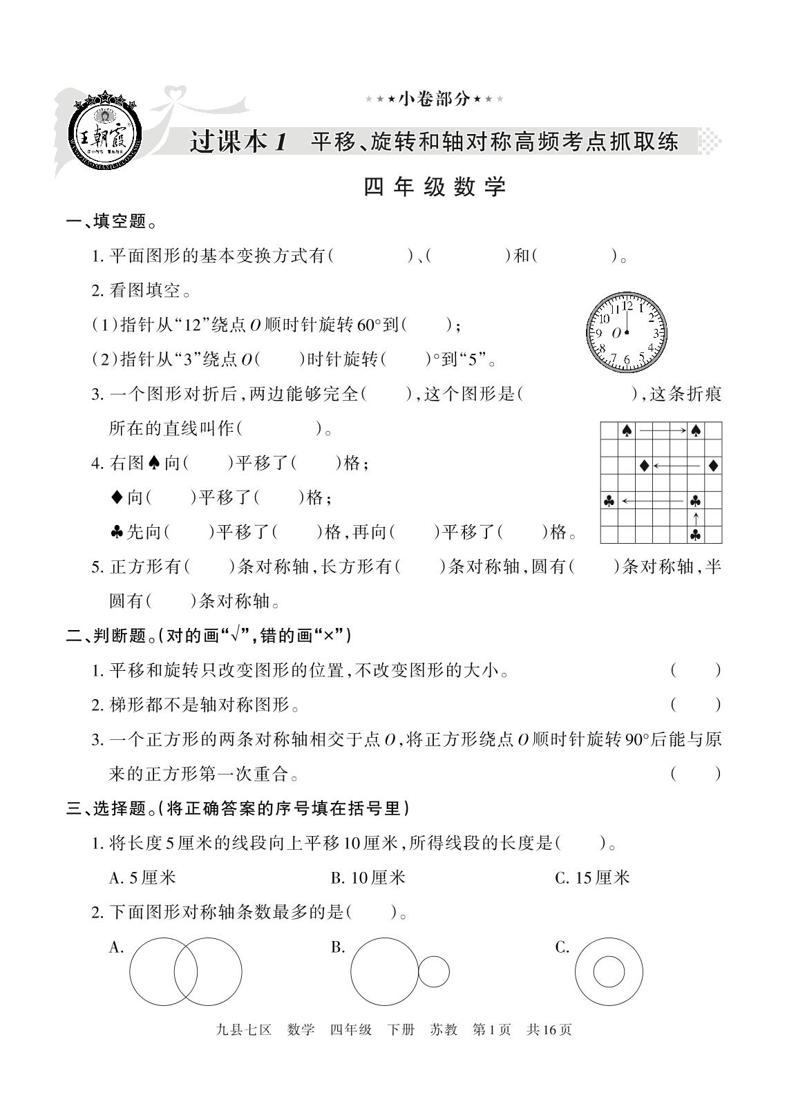 王朝霞期末过课本四年级下册数学(苏教版)_R210804134506【0】