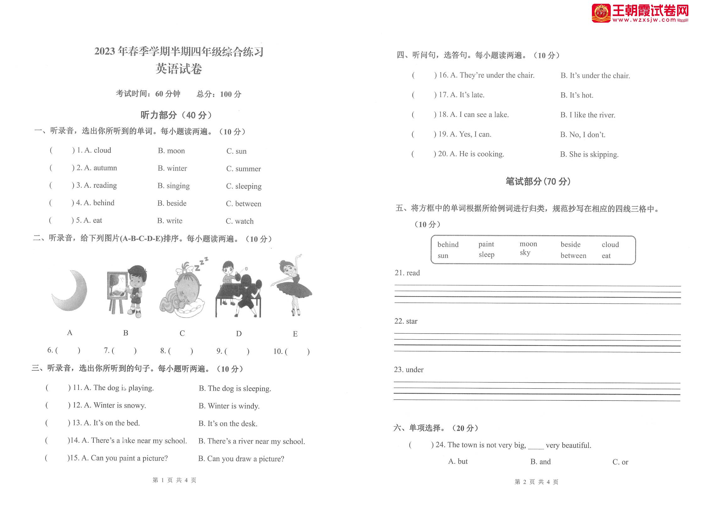 贵州省铜仁市松桃县2022-2023学年度下学期期中综合练习四年级英语(湘少版)