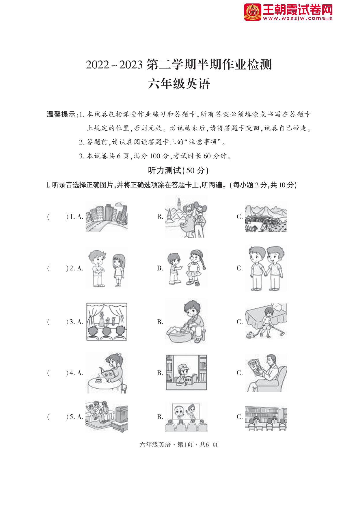 贵州省六盘水市盘州市2022~2023学年第二学期期中作业检测六年级英语(PEP版)【无听力音频】
