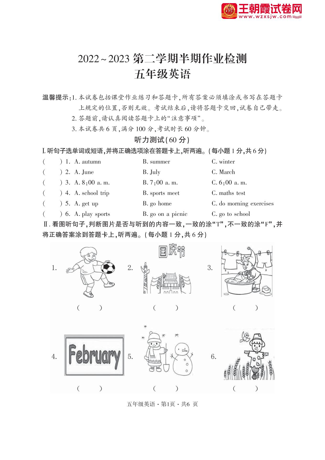 贵州省六盘水市盘州市2022~2023学年第二学期期中作业检测五年级英语(PEP版)【无听力音频】