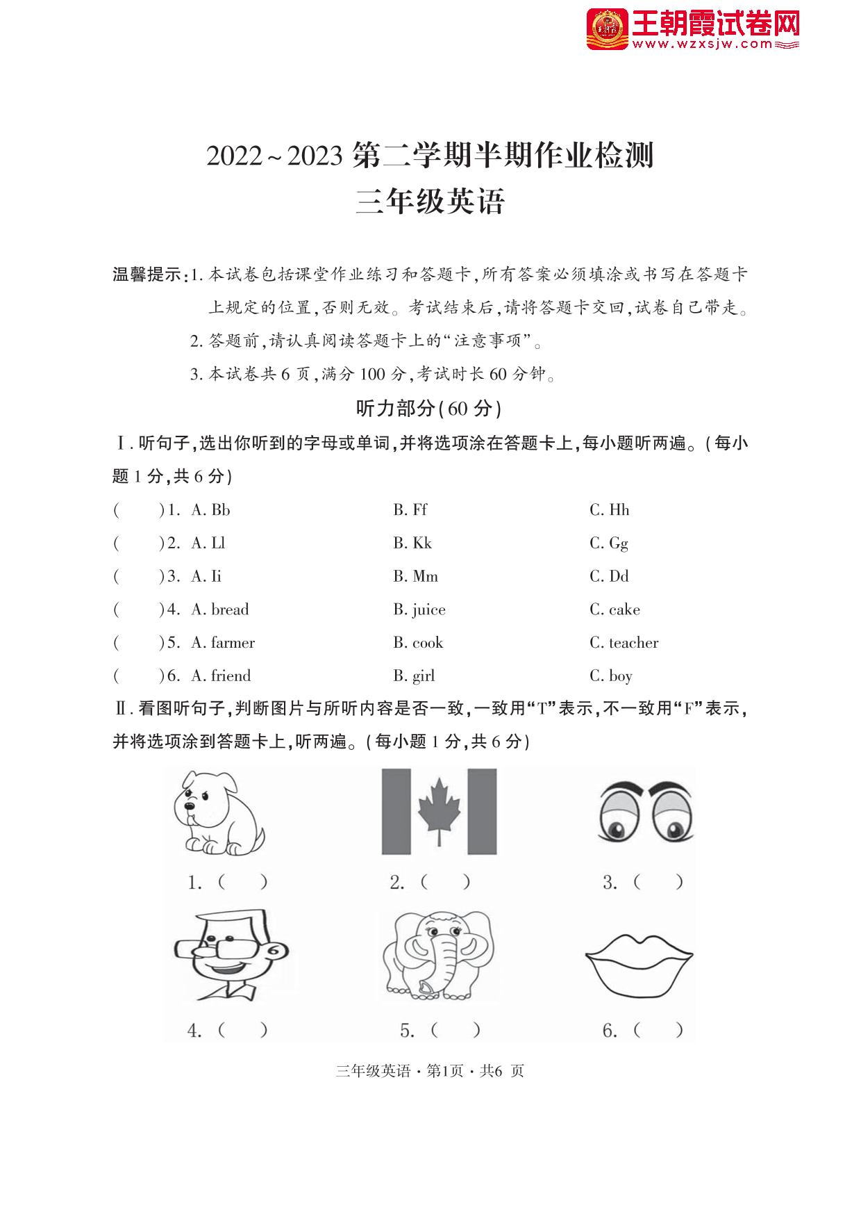 贵州省六盘水市盘州市2022~2023学年第二学期期中作业检测三年级英语(PEP版)【无听力音频】