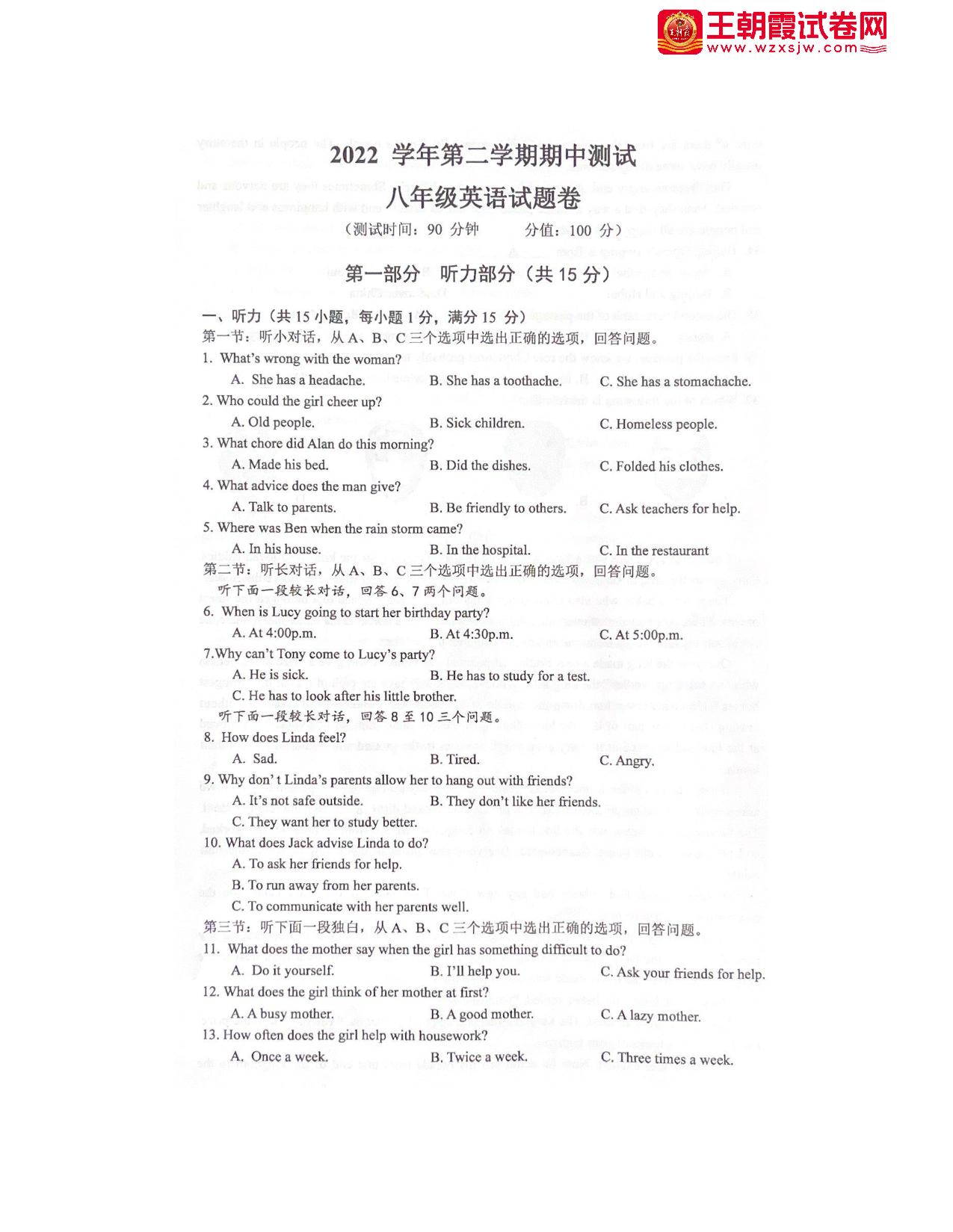 浙江省宁波市海曙区十校联考2022-2023学年下学期4月期中试题八年级英语(人教版)【无听力音频】