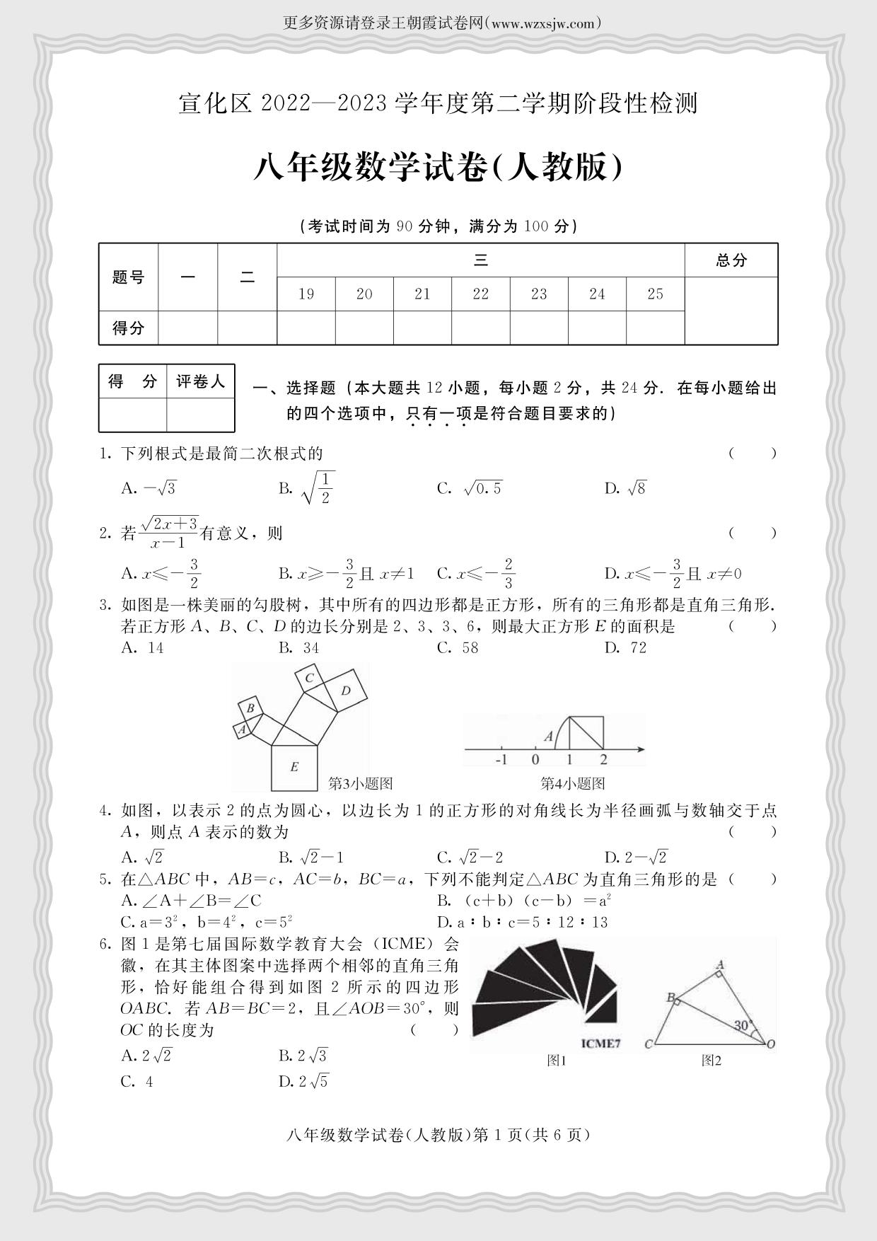 河北省张家口市宣化区2022-2023学年度第二学期期中阶段性检测试卷八年级数学(人教版)