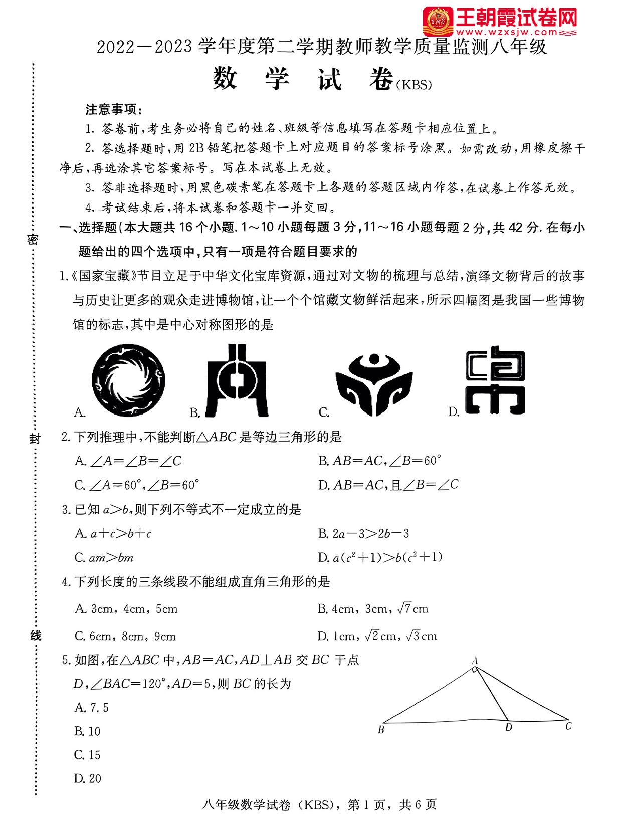 河北省保定市清苑区2022-2023学年度第二学期教师教学质量监测期中试卷八年级数学(北师版)