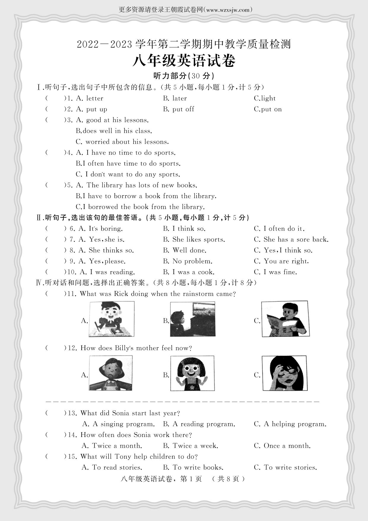 河北省石家庄市高邑县2022-2023学年第二学期期中教学质量检测试卷八年级英语(人教版)【无听力音频】