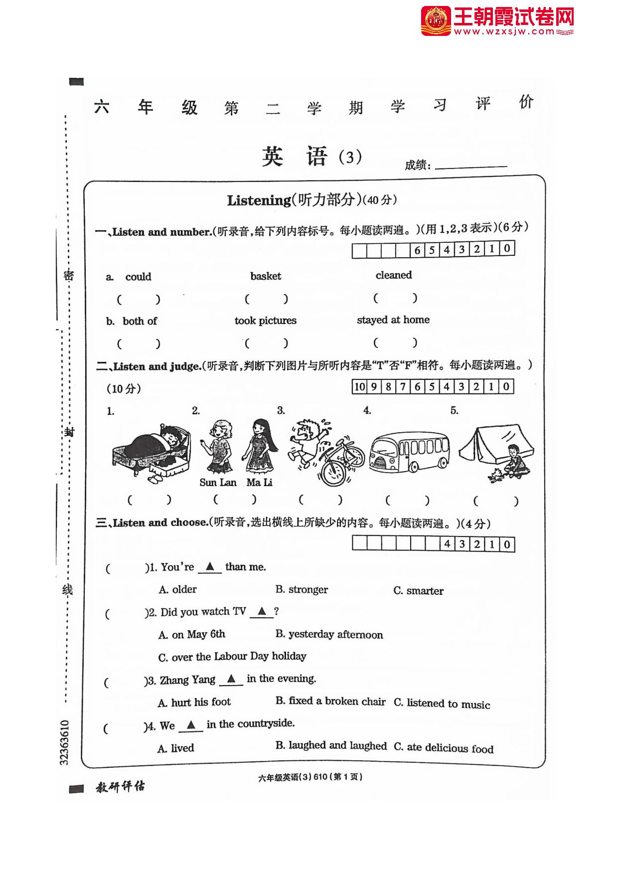 吉林省白城市通榆县育才学校2022-2023学年下学期5月月考试卷六年级英语(PEP版)