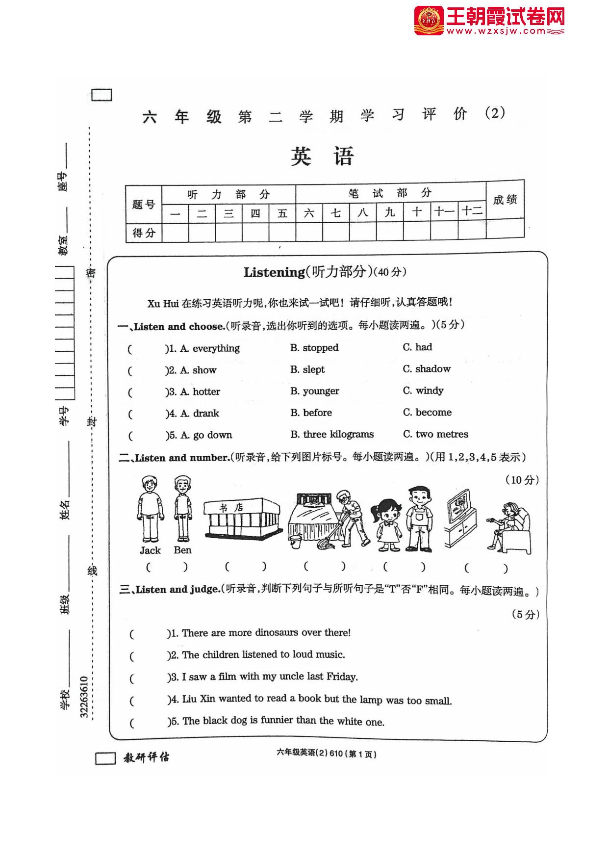 吉林省白城市通榆县育才学校2022-2023学年下学期期中考试试卷六年级英语(PEP版)