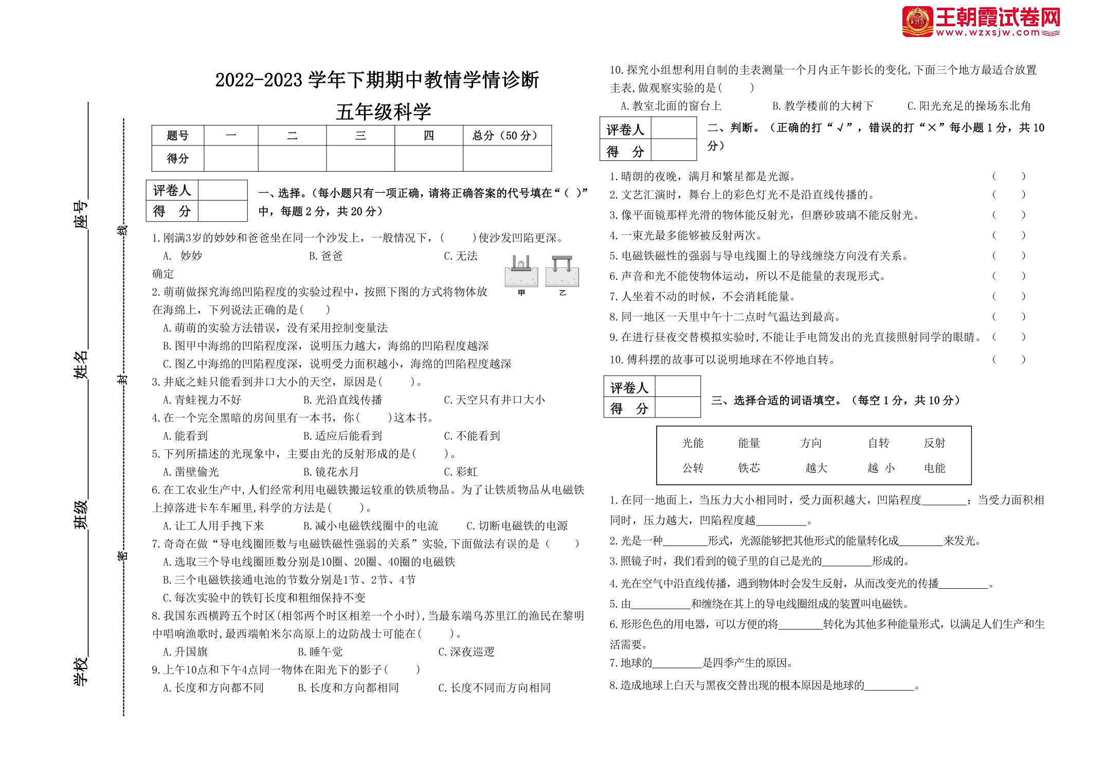 河南省三门峡市陕州区2022—2023学年下学期期中教情学情诊断五年级科学(大象版)