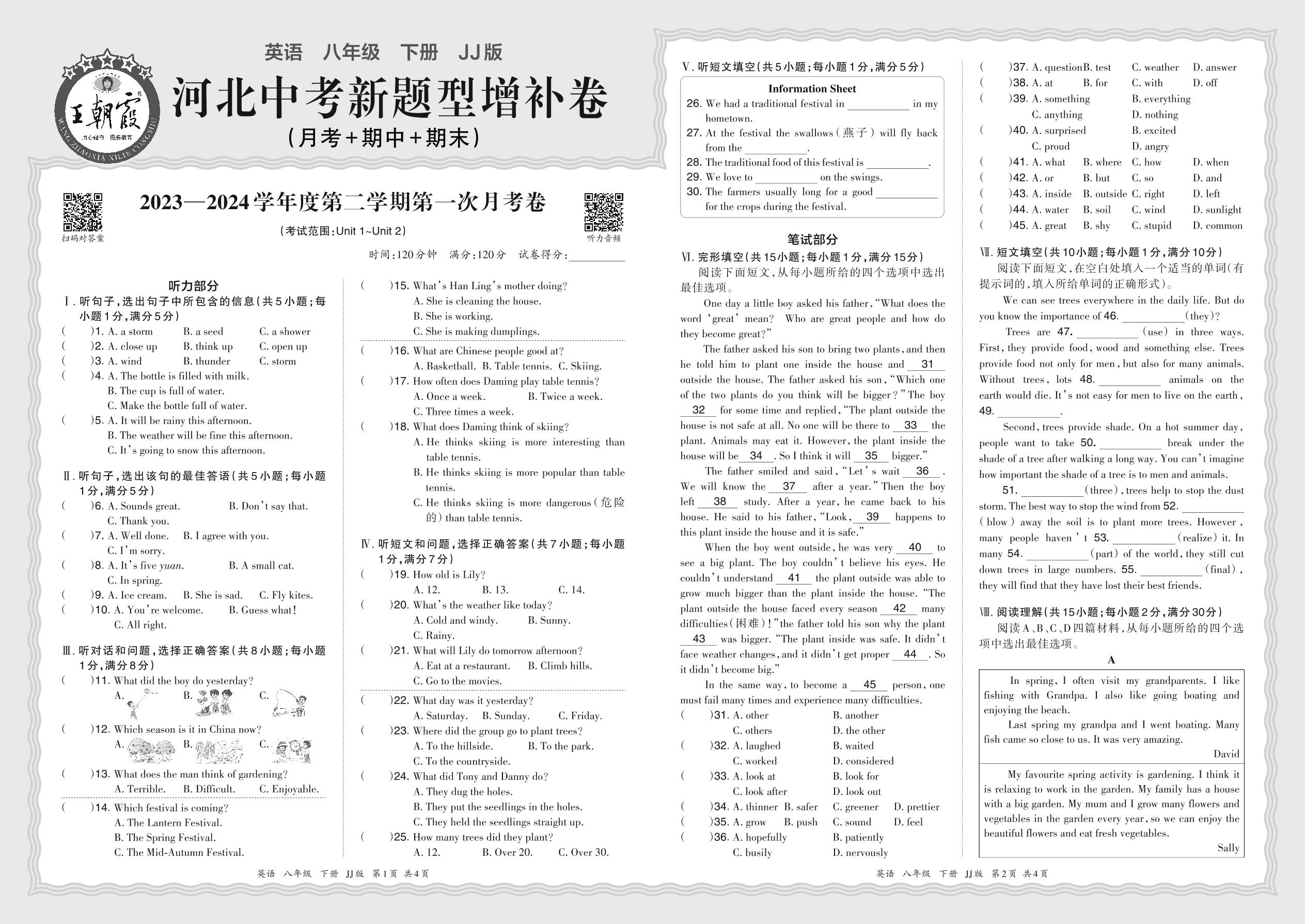 2023—2024学年度第二学期第一次月考卷八年级英语(冀教版)