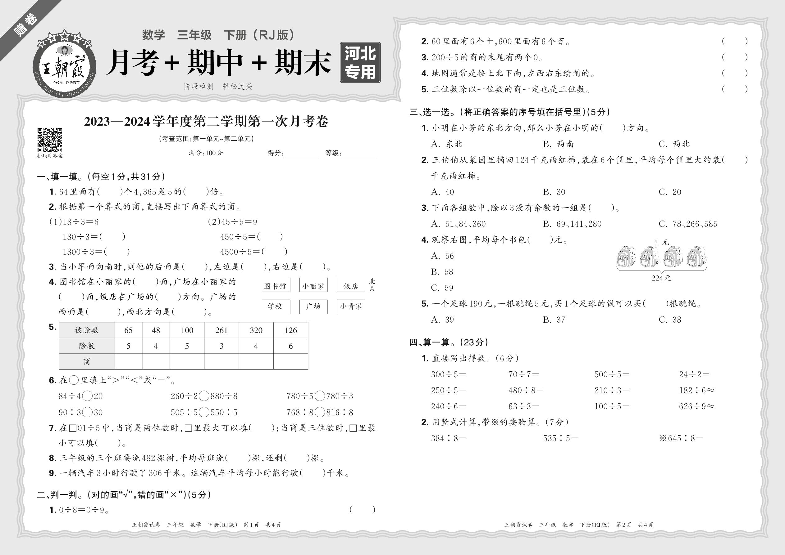 2023—2024学年度第二学期第一次月考卷三年级数学(人教版)