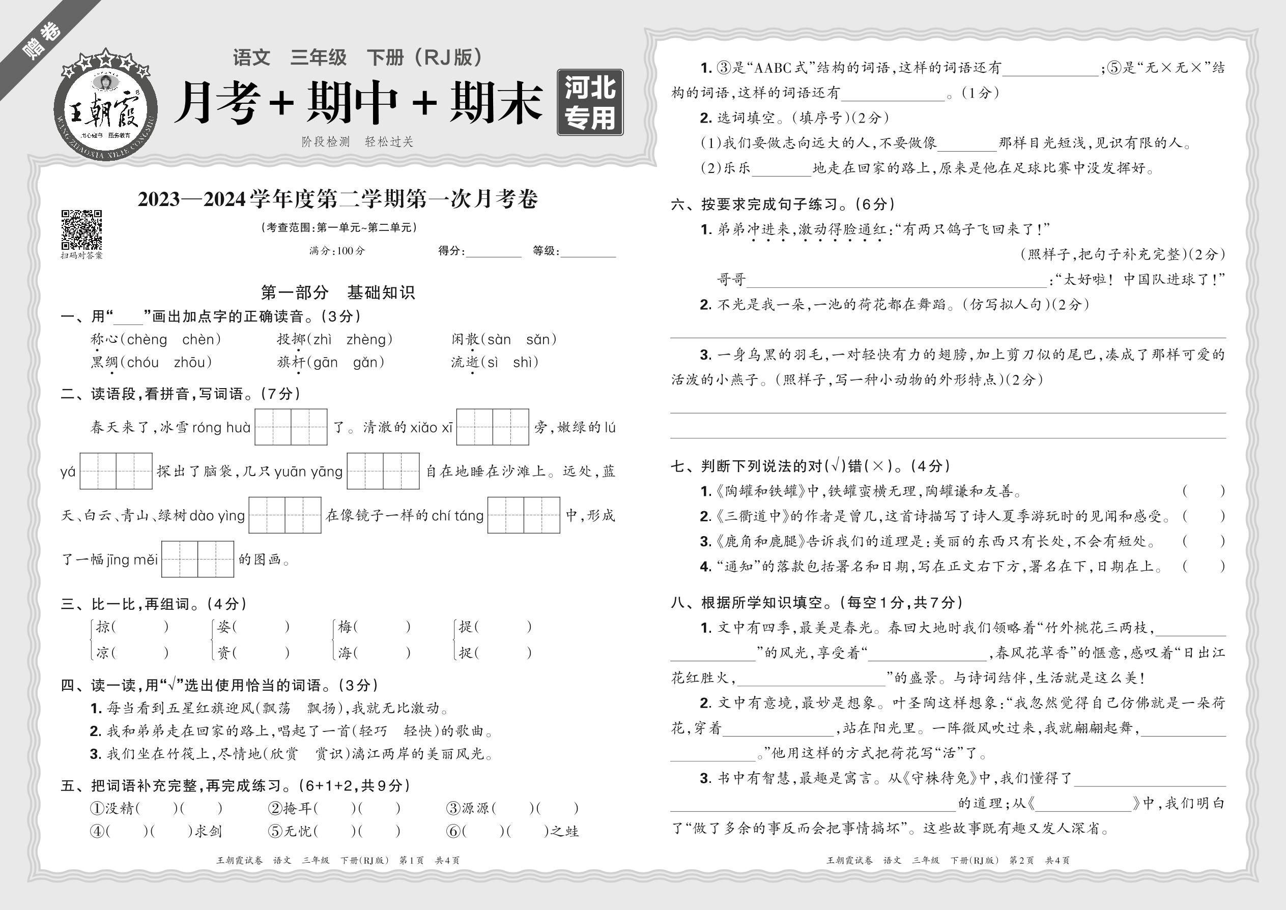 2023—2024学年度第二学期第一次月考卷三年级语文(人教版)