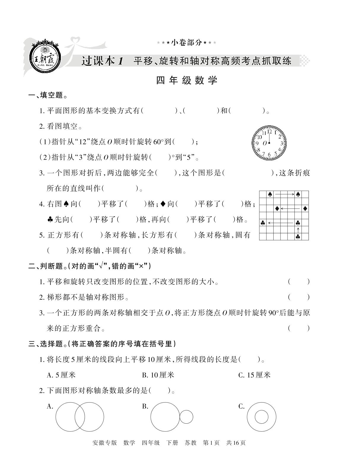 四年级数学苏教版下册过课本