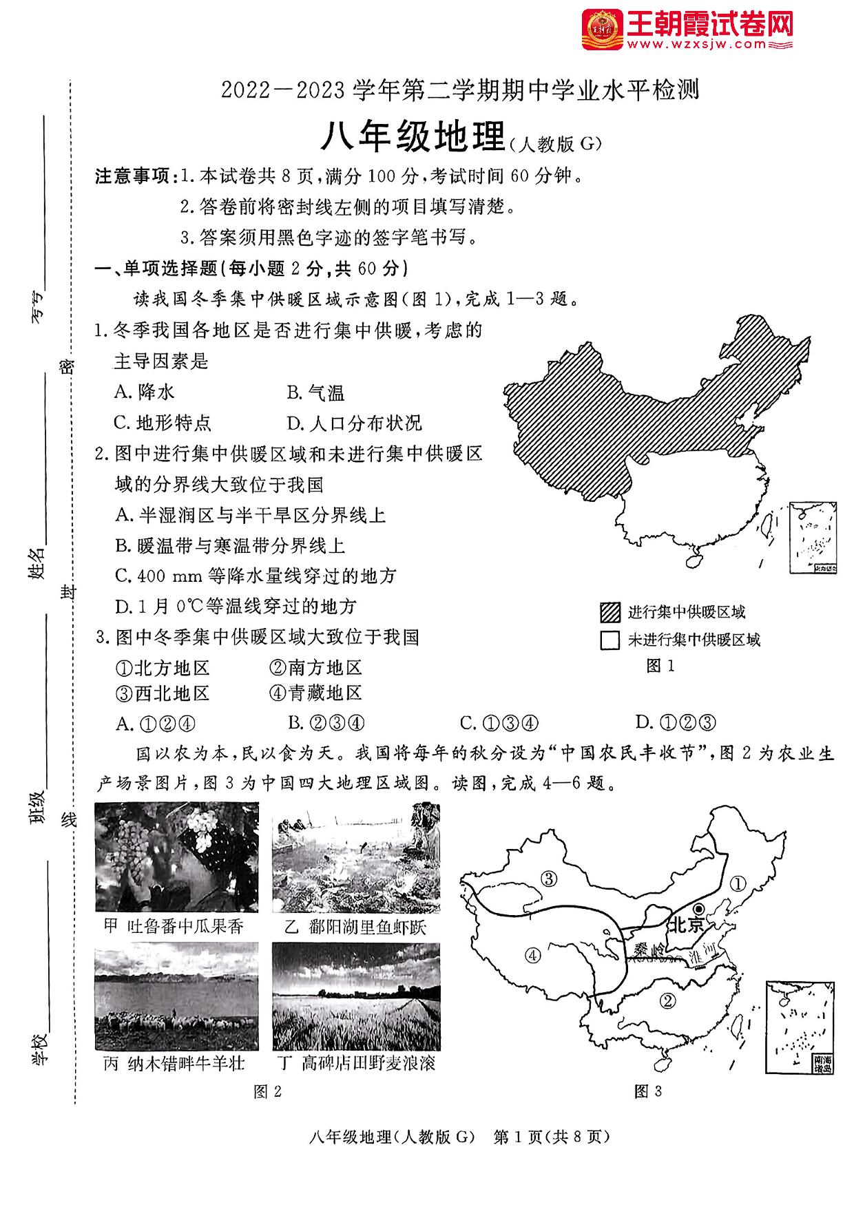 河北省保定市高碑店市2022-2023学年第二学期期中学业水平检测八年级地理(人教版)