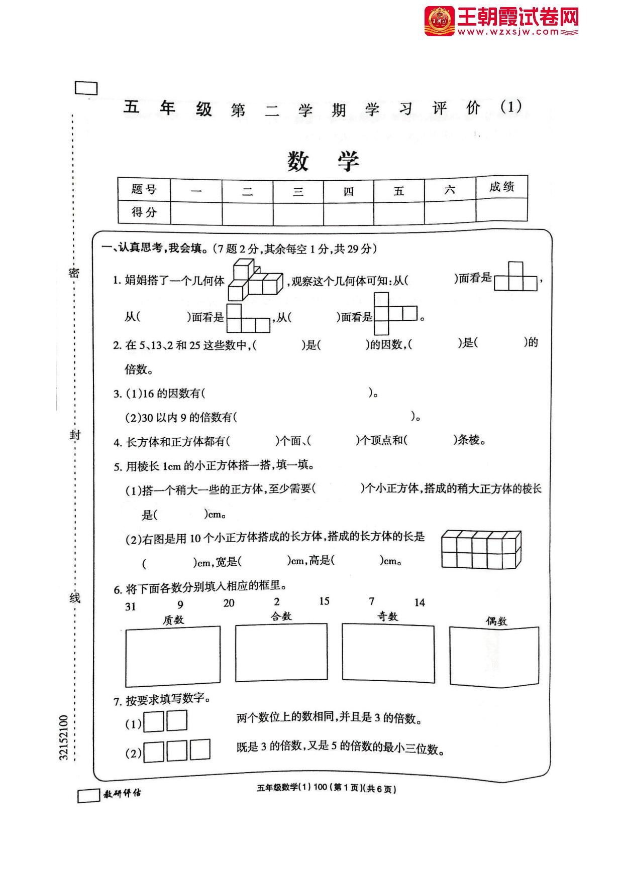 吉林省白城市通榆县育才学校2022-2023学年下学期3月月考试卷五年级数学(人教版)