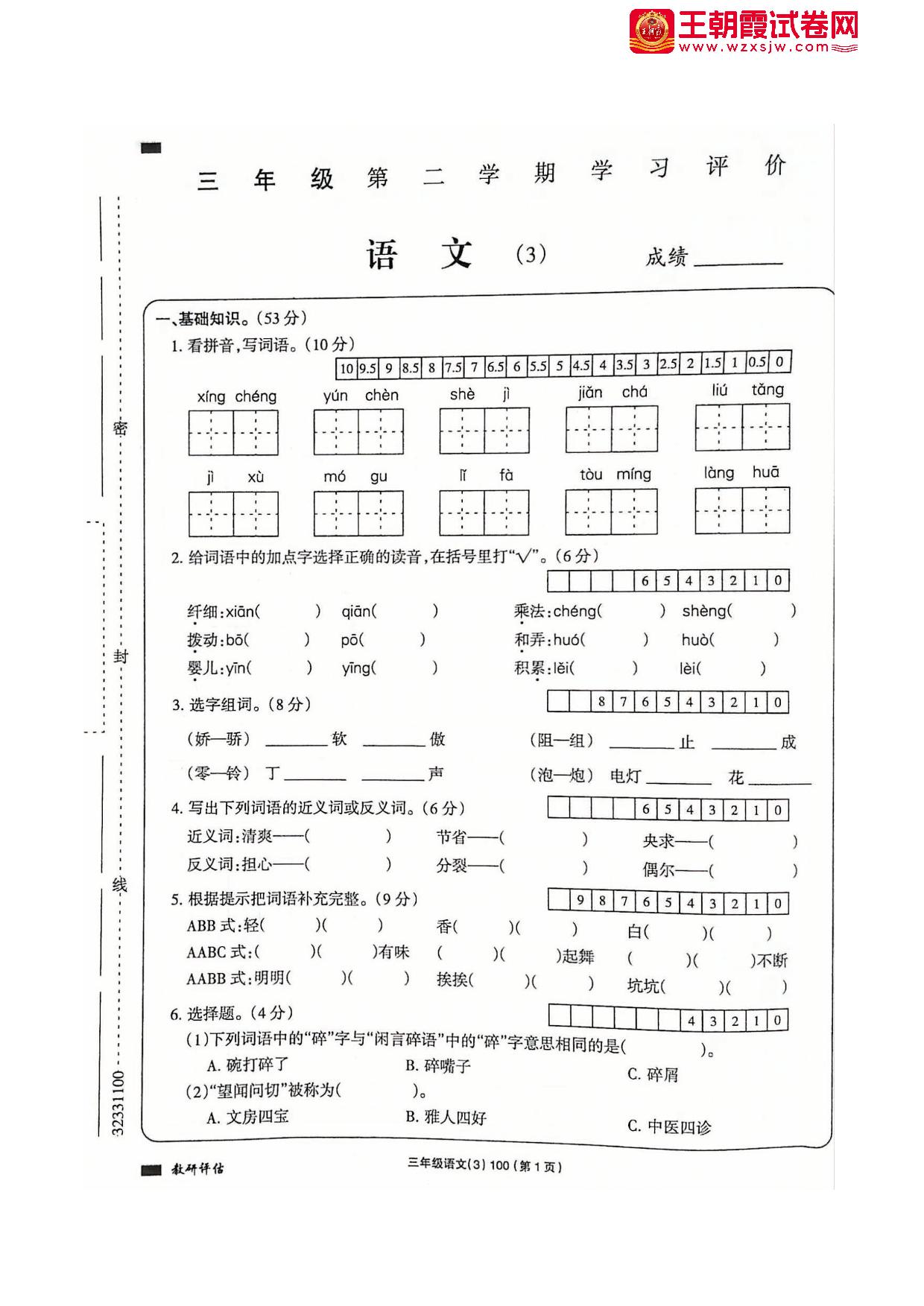 吉林省白城市通榆县育才学校2022-2023学年下学期5月月考试卷三年级语文(人教版)