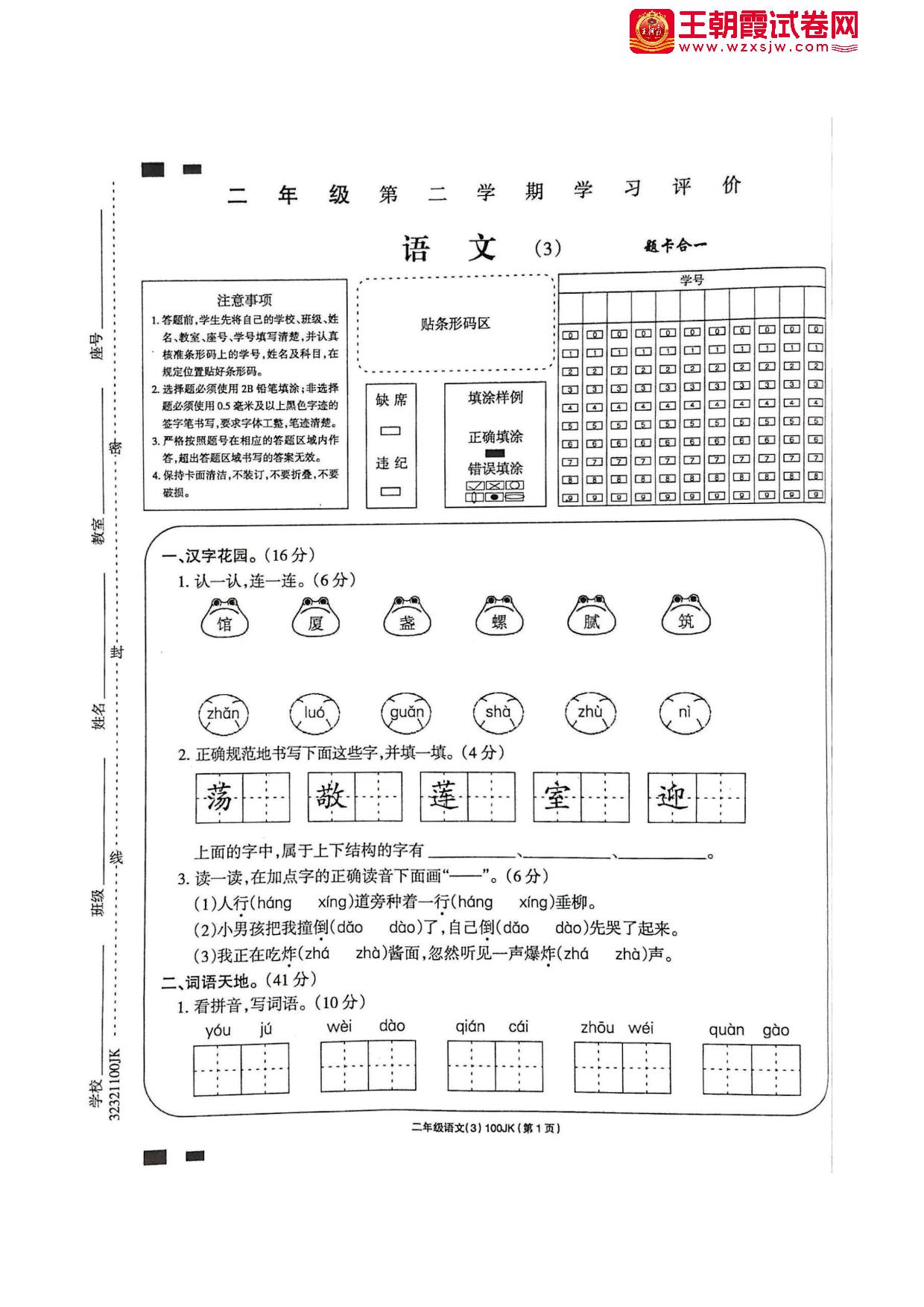 吉林省白城市通榆县育才学校2022-2023学年下学期5月月考试卷二年级语文(人教版)