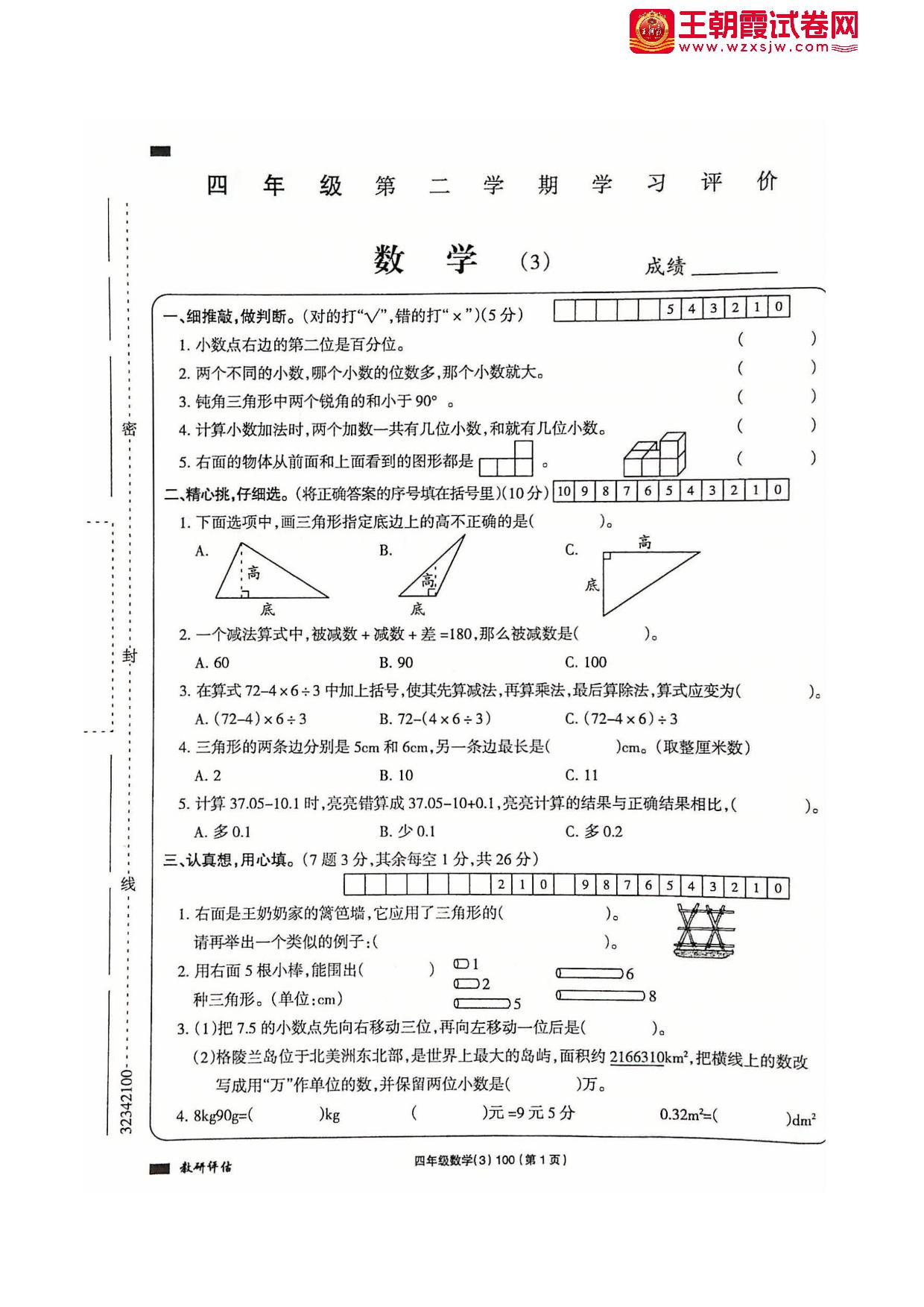 吉林省白城市通榆县育才学校2022-2023学年下学期5月月考试卷四年级数学(人教版)