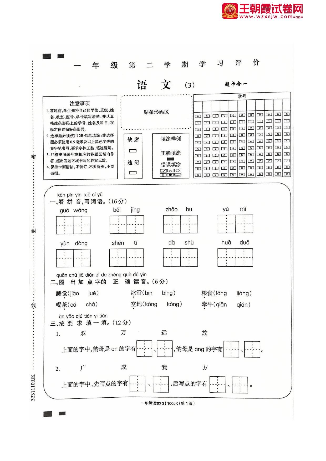 吉林省白城市通榆县育才学校2022-2023学年下学期5月月考试卷一年级语文(人教版)