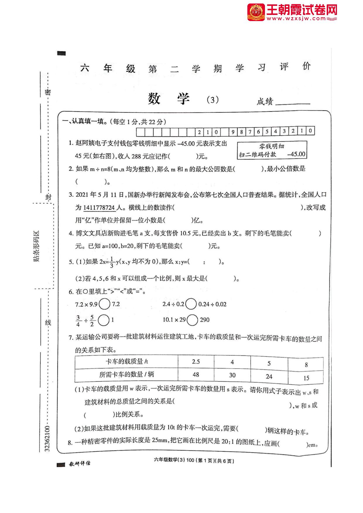 吉林省白城市通榆县育才学校2022-2023学年下学期5月月考试卷六年级数学(人教版)