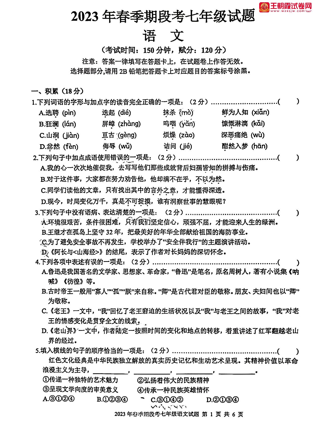 广西壮族自治区贵港市平南县2022—2023学年下学期期中试题七年级语文(人教版)