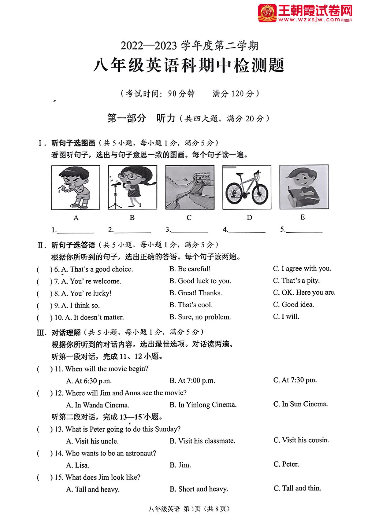 海南省海口市十校联考2022-2023学年度第二学期期中检测题八年级英语(外研版)