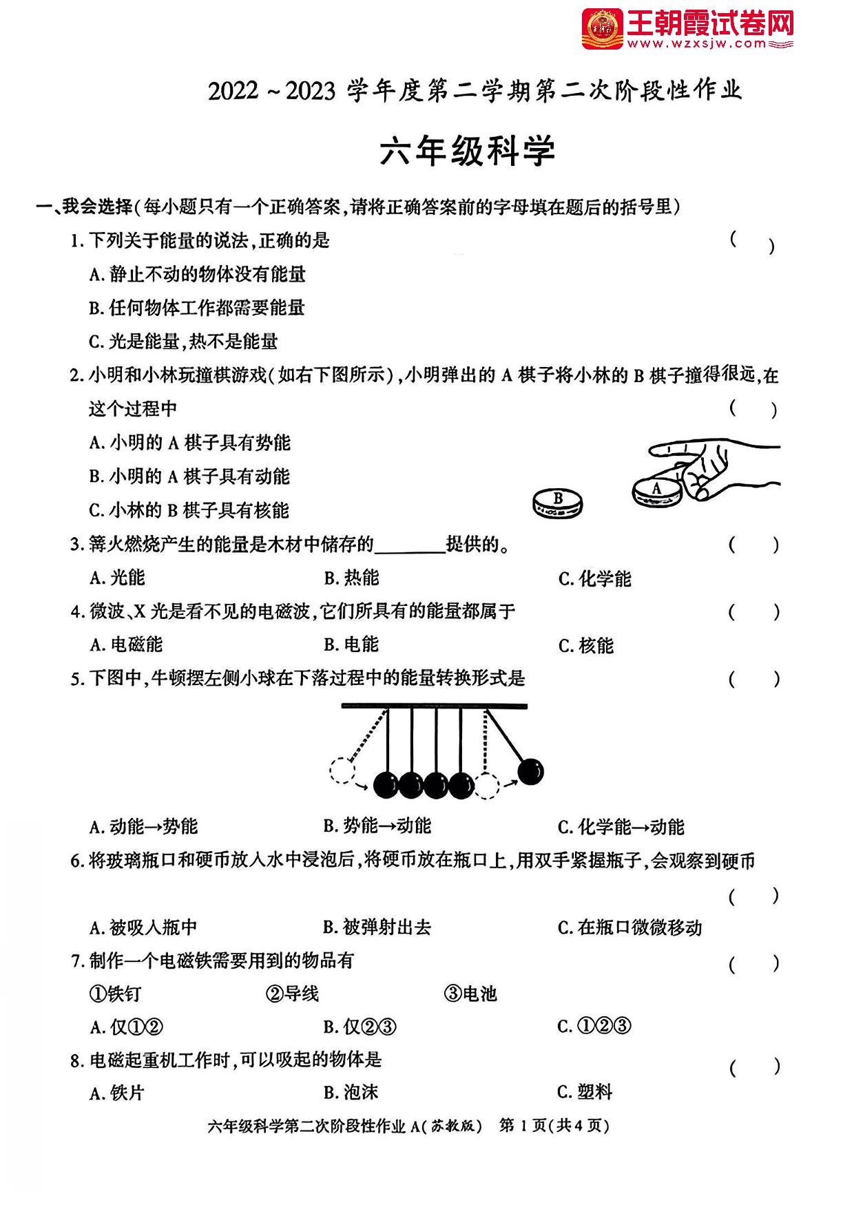 陕西省西安市2022-2023学年度第二学期第二次阶段性作业(期中)六年级科学(苏教版)