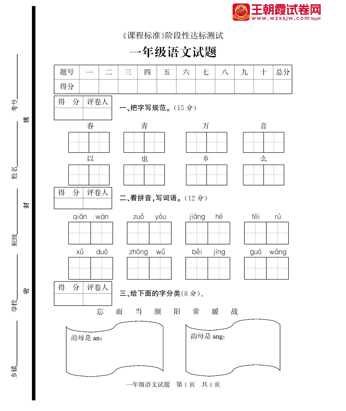 山东省济宁市泗水县2022-2023学年下学期期中阶段性达标测试一年级语文(人教版)