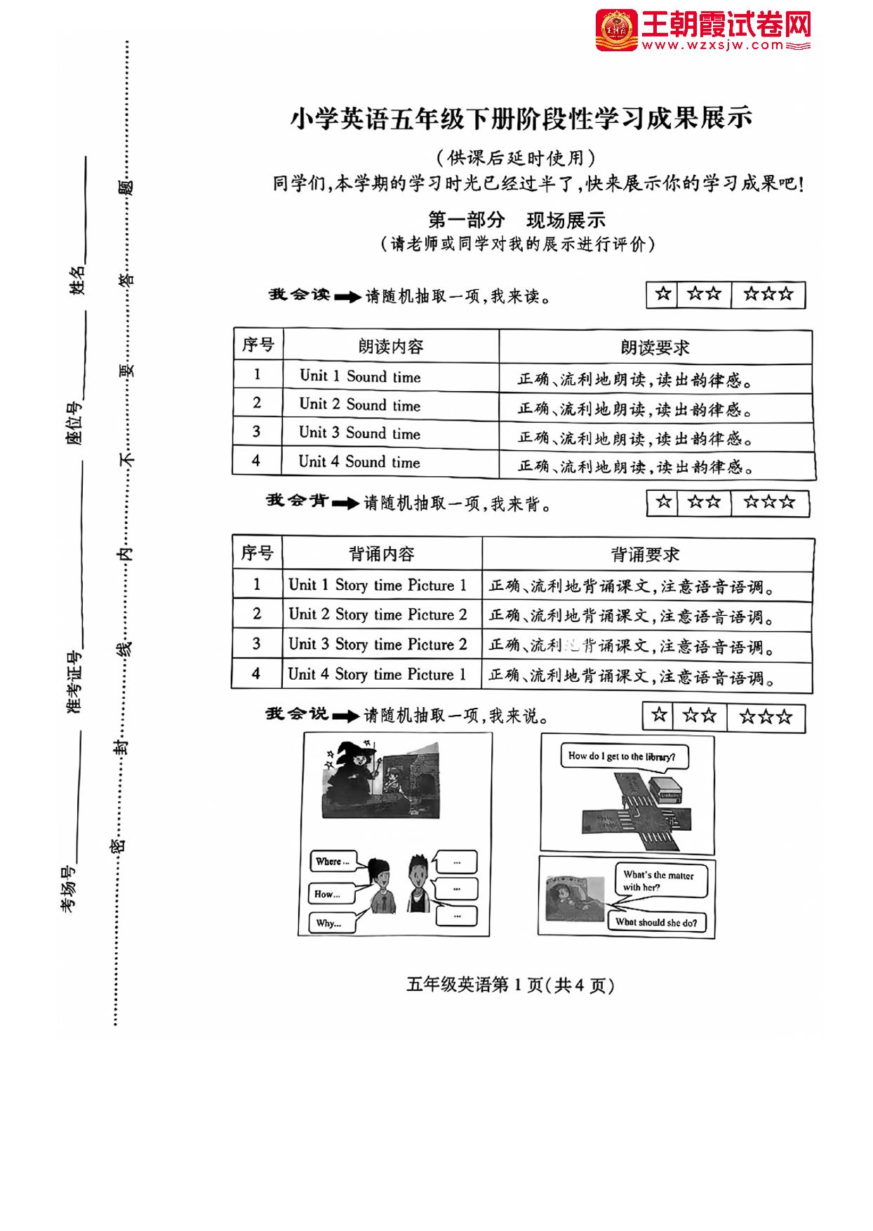江苏省徐州市泉山区2022-2023学年第二学期4月(期中)阶段性学习成果展示试卷(课后延时卷)五年级英语(译林版)