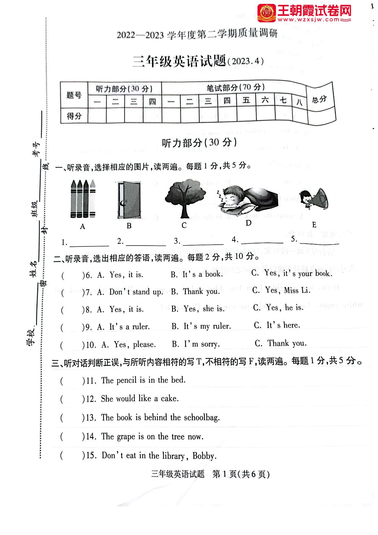 江苏省徐州市沛县2022-2023学年第二学期期中质量调研试题三年级英语【无听力音频】(译林版)