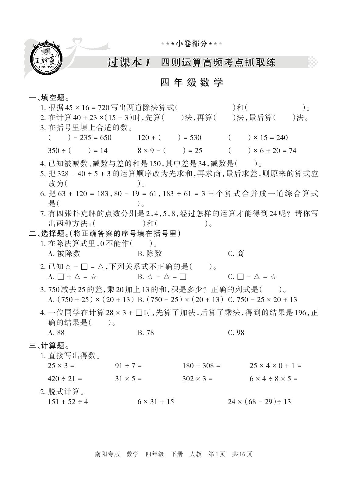 王朝霞期末小卷四年级下册数学(人教版)_R210804135041【0】
