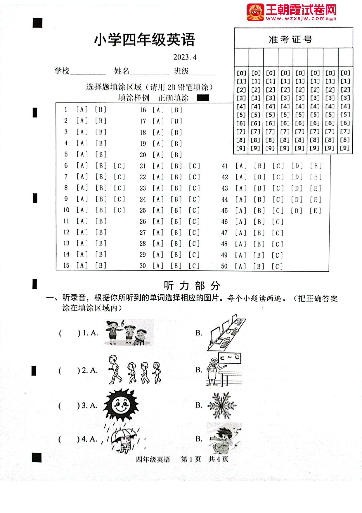 山东省菏泽市牡丹区2022-2023学年下学期4月期中考试四年级英语(PEP版)