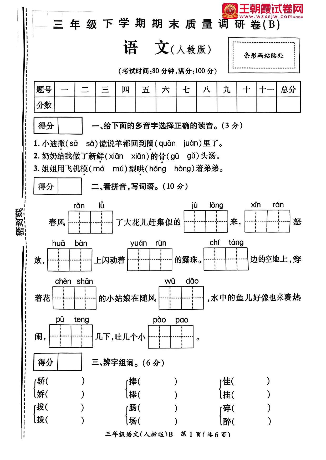 河南省商丘市2022—2023学年下学期期末质量调研卷(B)三年级语文(人教版)
