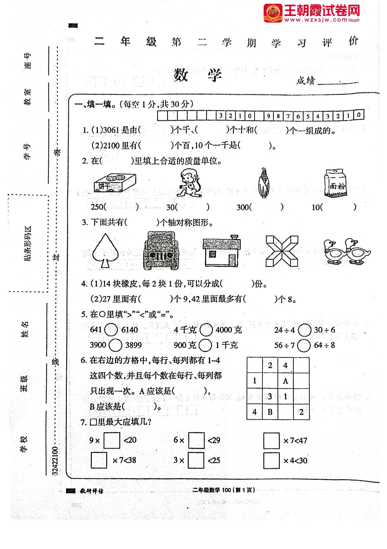 河南省南阳市唐河县2022—2023学年下学期期末学习评价二年级数学(人教版)