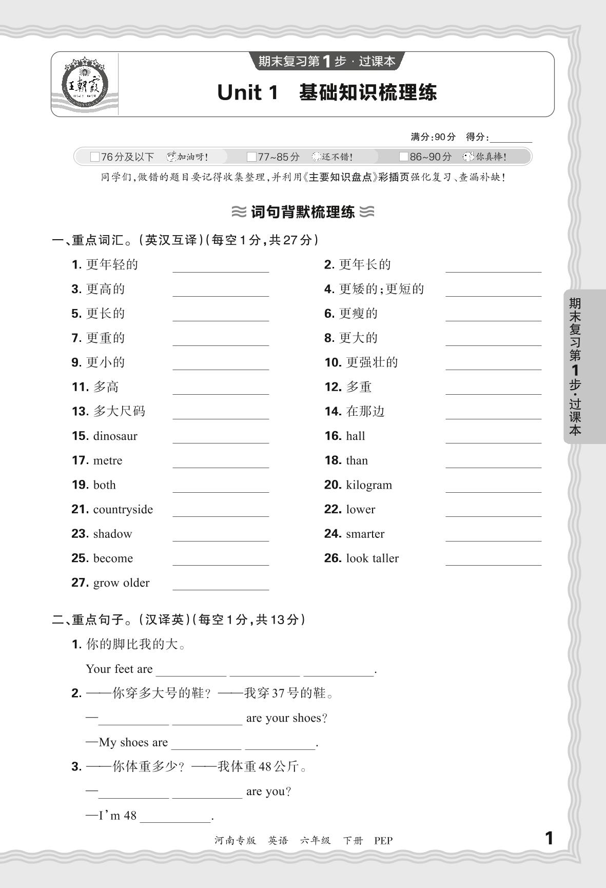 2024春下册六年级英语人教PEP版 期末过课本河南版·Unit 1 基础知识梳理练