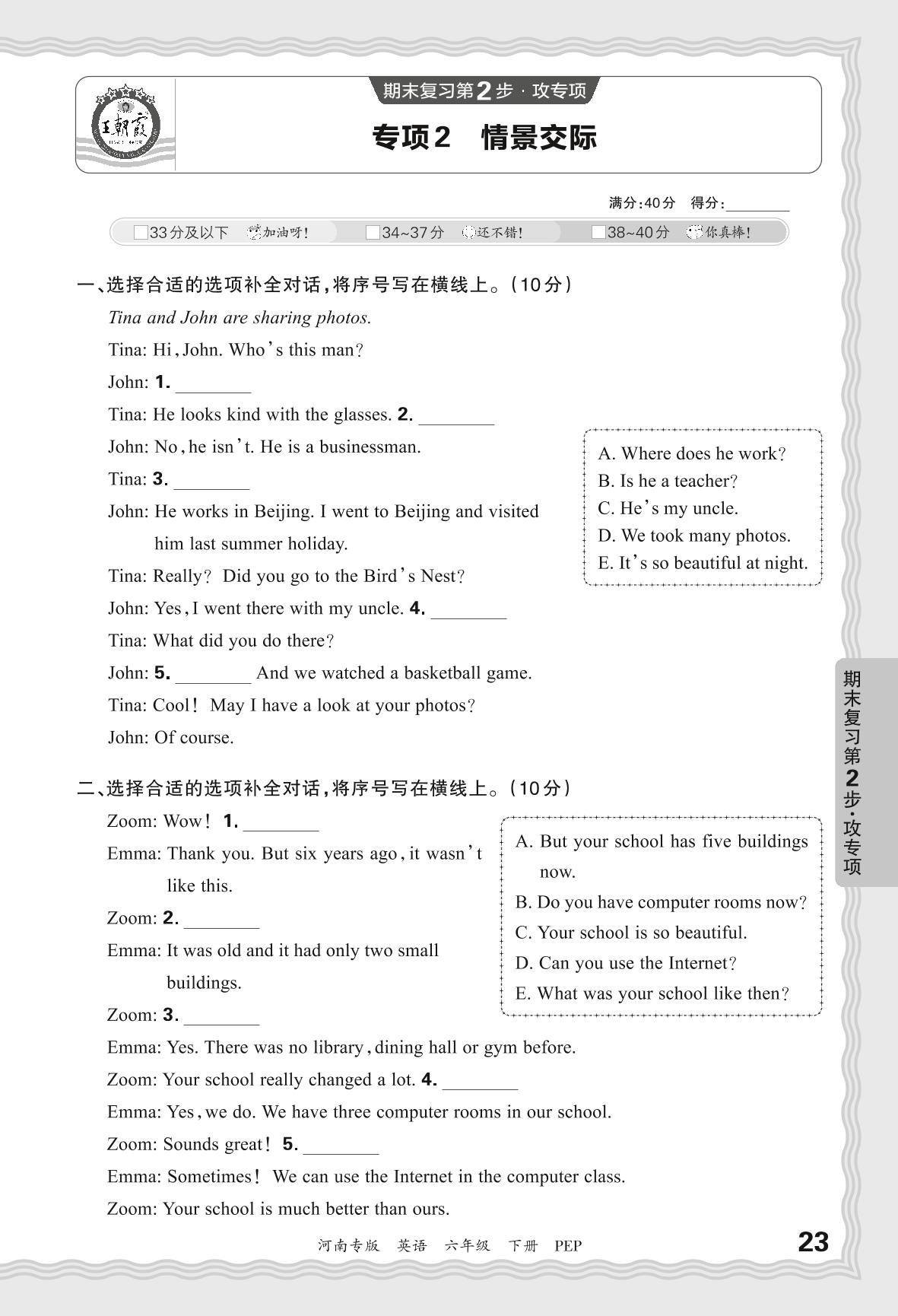 2024春下册六年级英语人教PEP版 期末专项卷河南版·情景交际