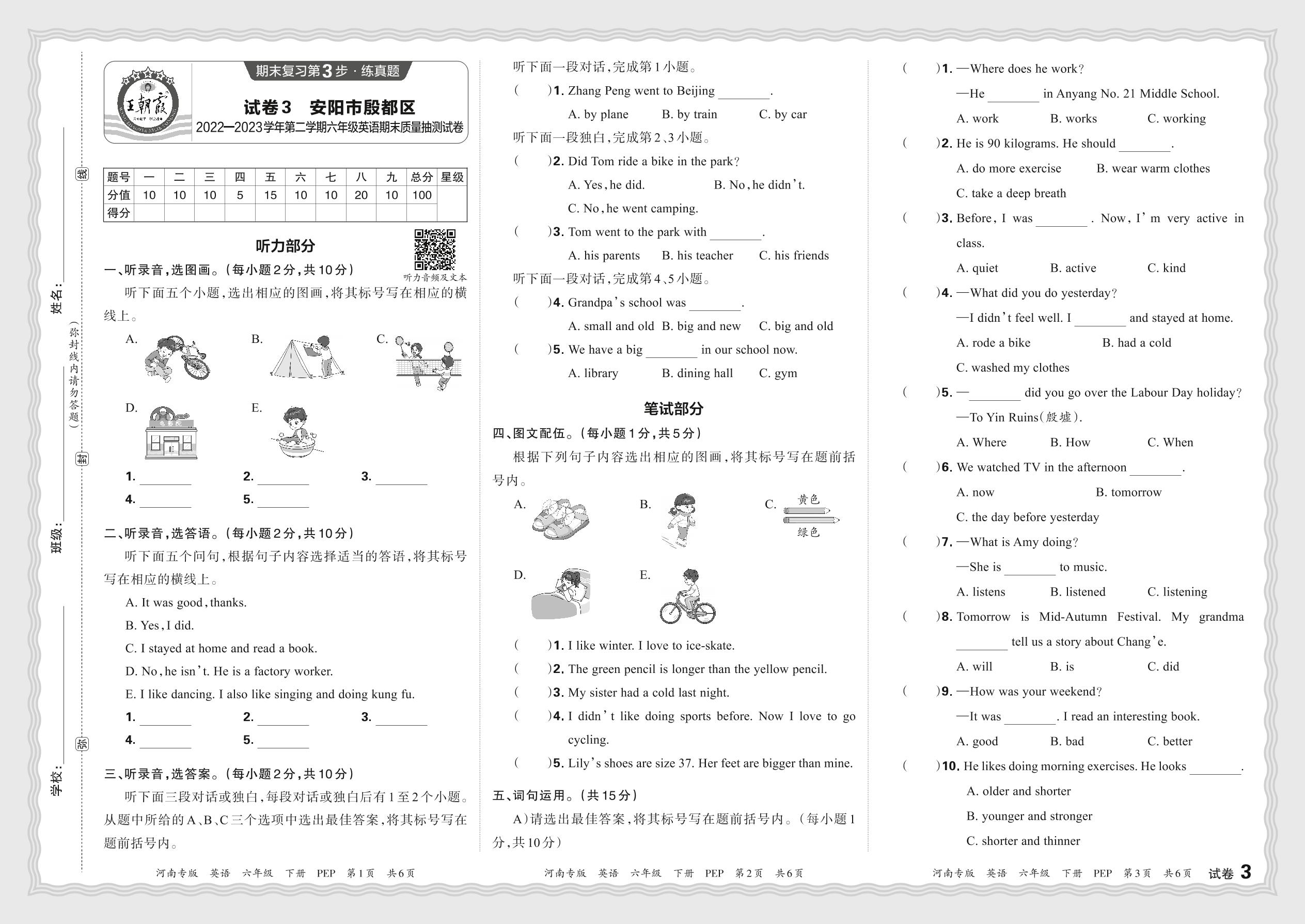 河南省安阳市殷都区2022—2023学年第二学期六年级英语期末质量抽测试卷(人教PEP版)【3】