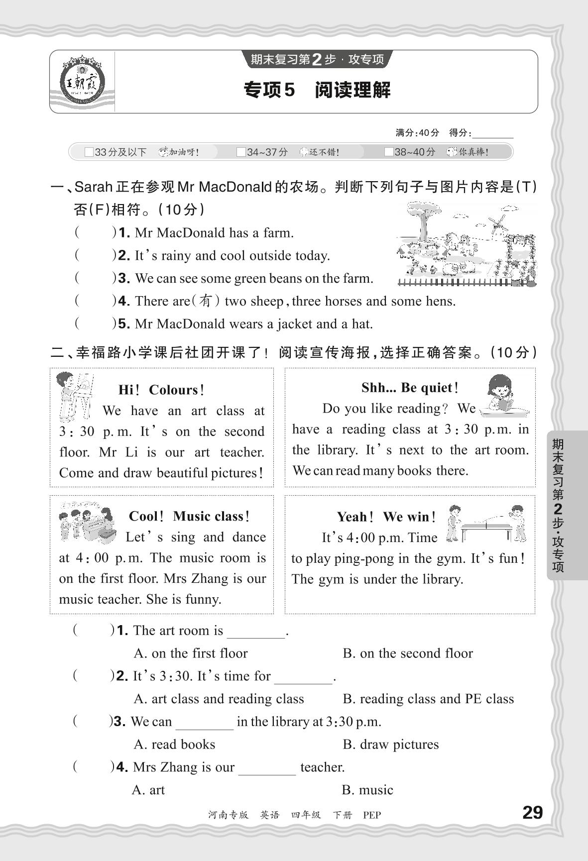 2024春下册四年级英语人教PEP版 期末专项卷河南版·阅读理解