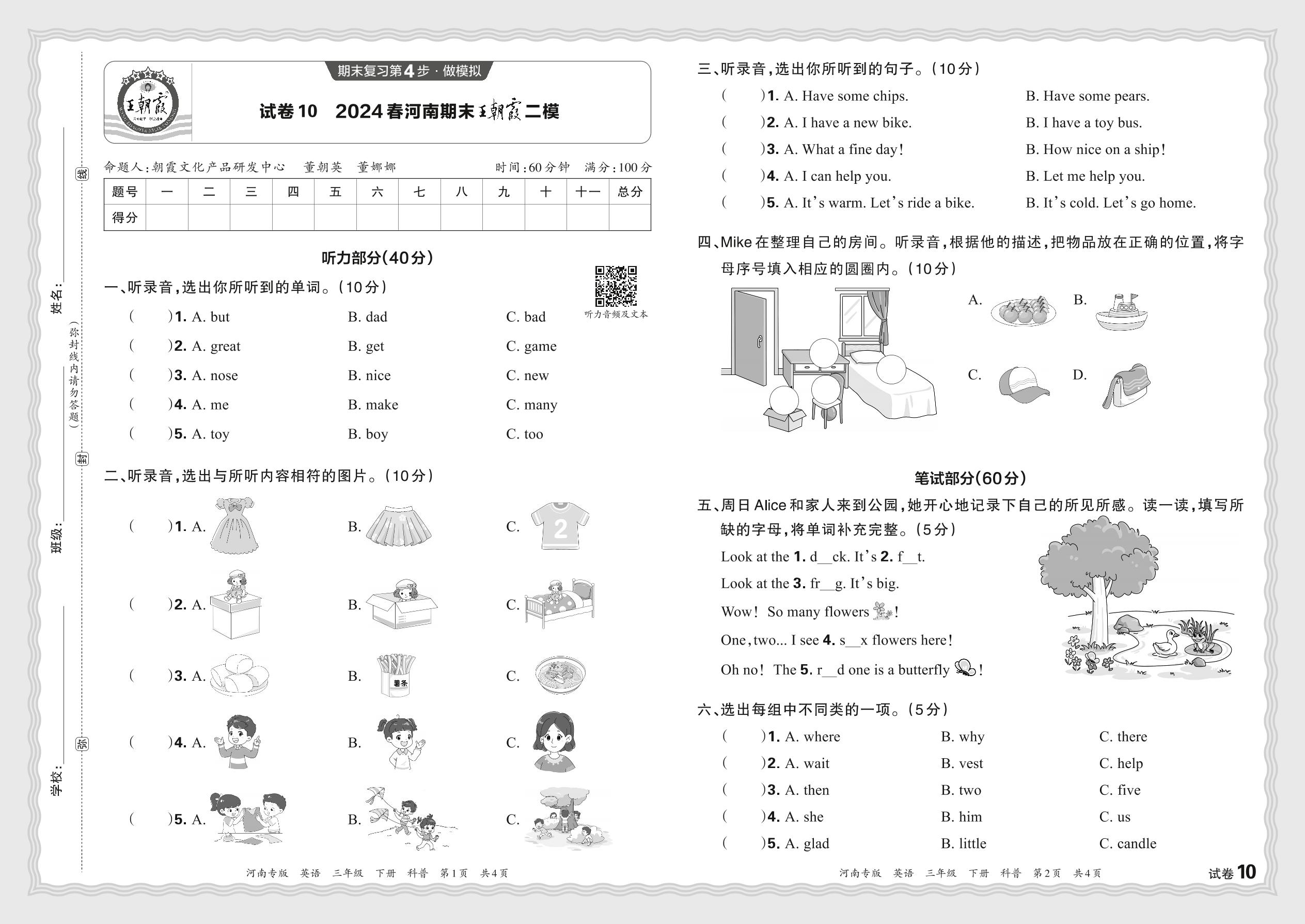 2024春下册三年级英语科普版 河南期末王朝霞二模