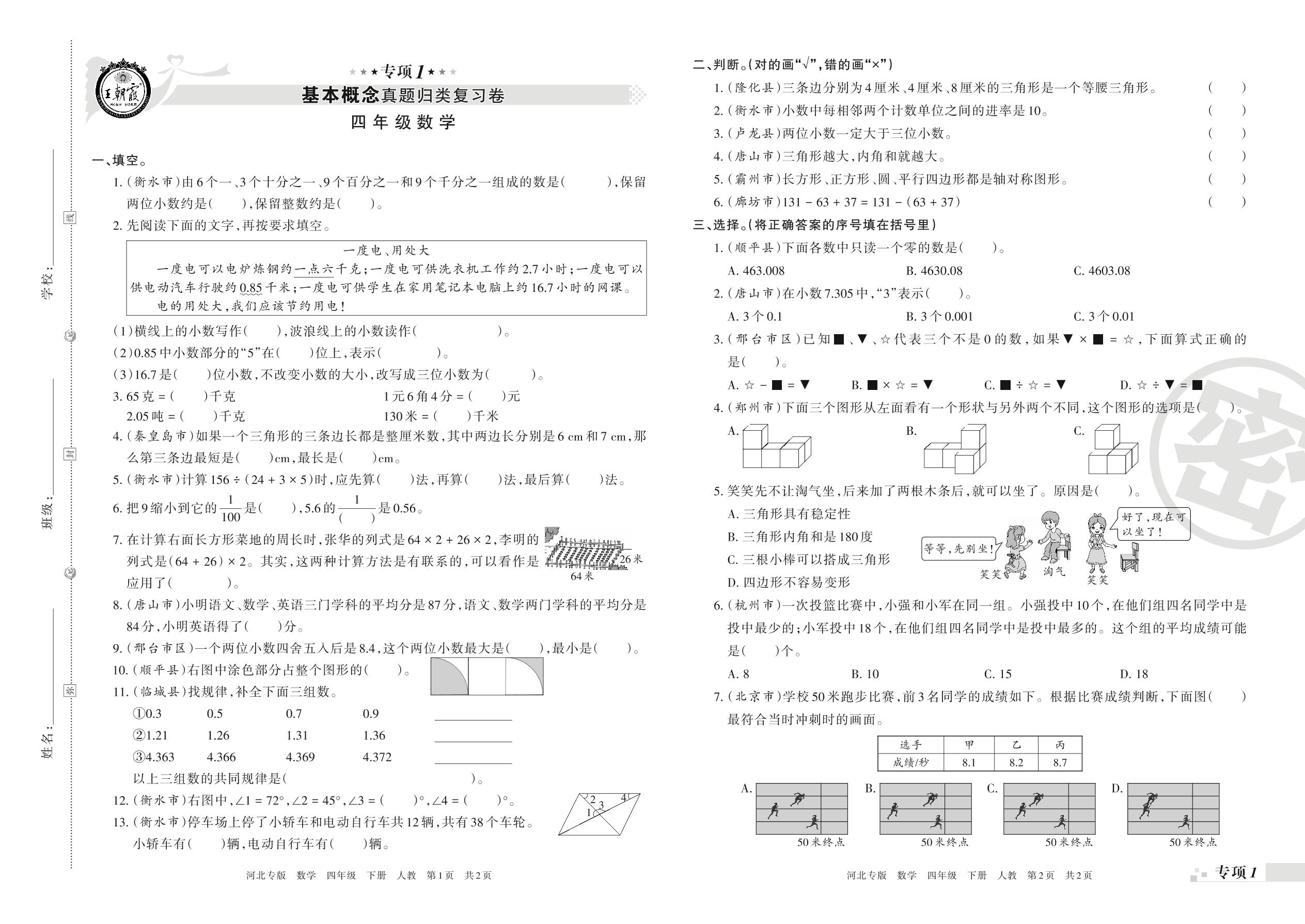 王朝霞期末专项卷——基本概念、计算真题归类复习四年级下册数学(人教版)_R210804135315【0】
