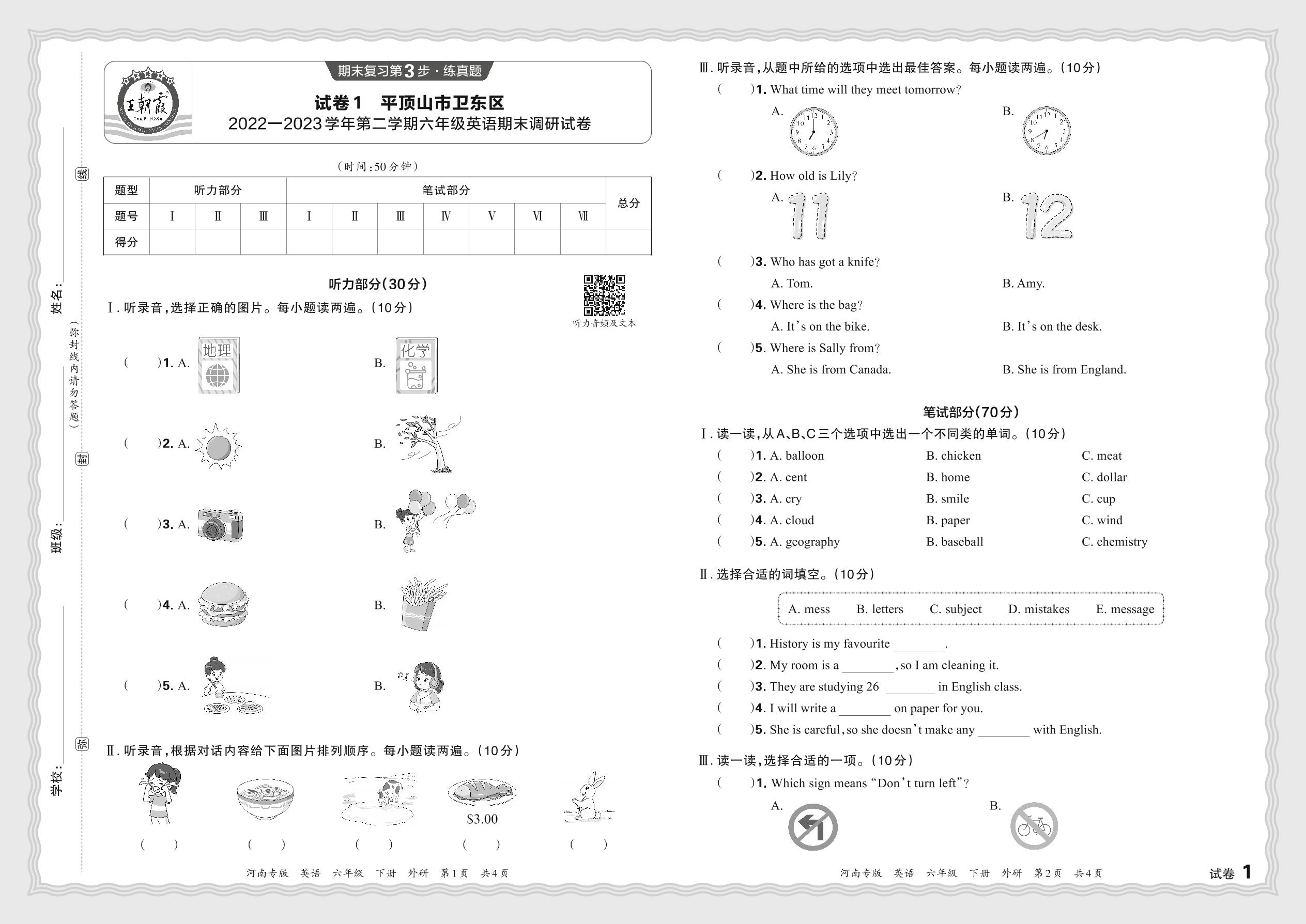 河南省平顶山市卫东区2022—2023学年第二学期六年级英语期末调研试卷(外研版)
