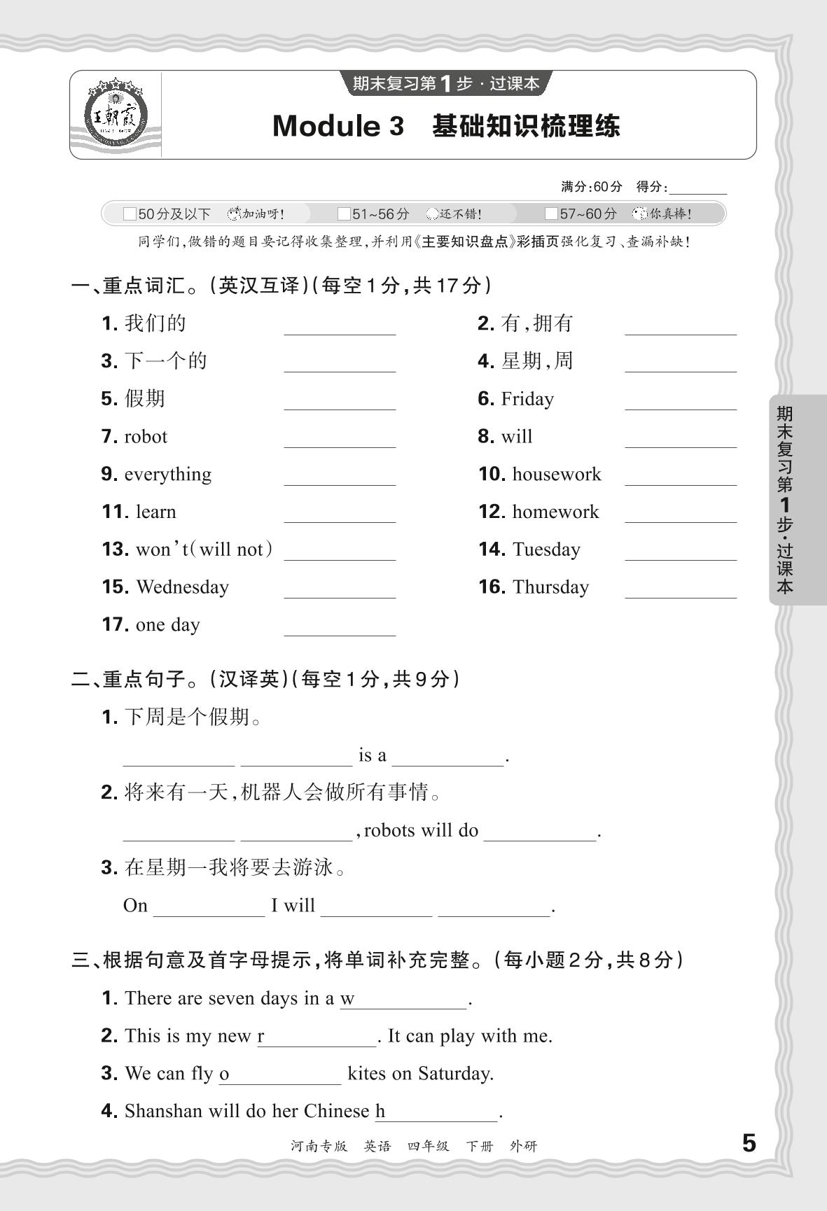 2024春下册四年级英语外研版 期末过课本河南版·Module 3 基础知识梳理练