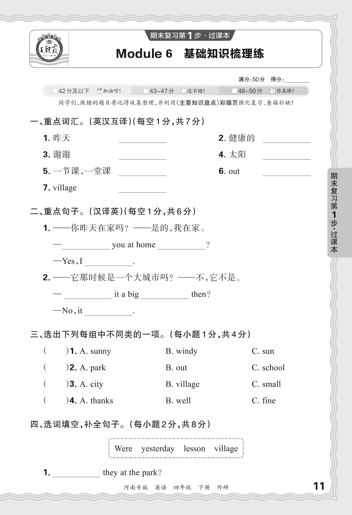 2024春下册四年级英语外研版 期末过课本河南版·Module 6 基础知识梳理练