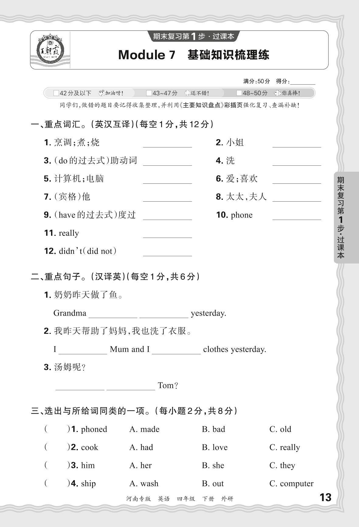 2024春下册四年级英语外研版 期末过课本河南版·Module 7 基础知识梳理练