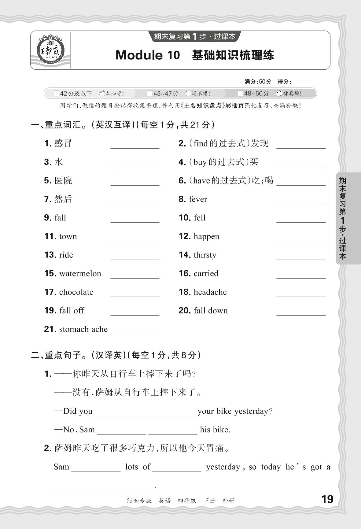 2024春下册四年级英语外研版 期末过课本河南版·Module 10 基础知识梳理练