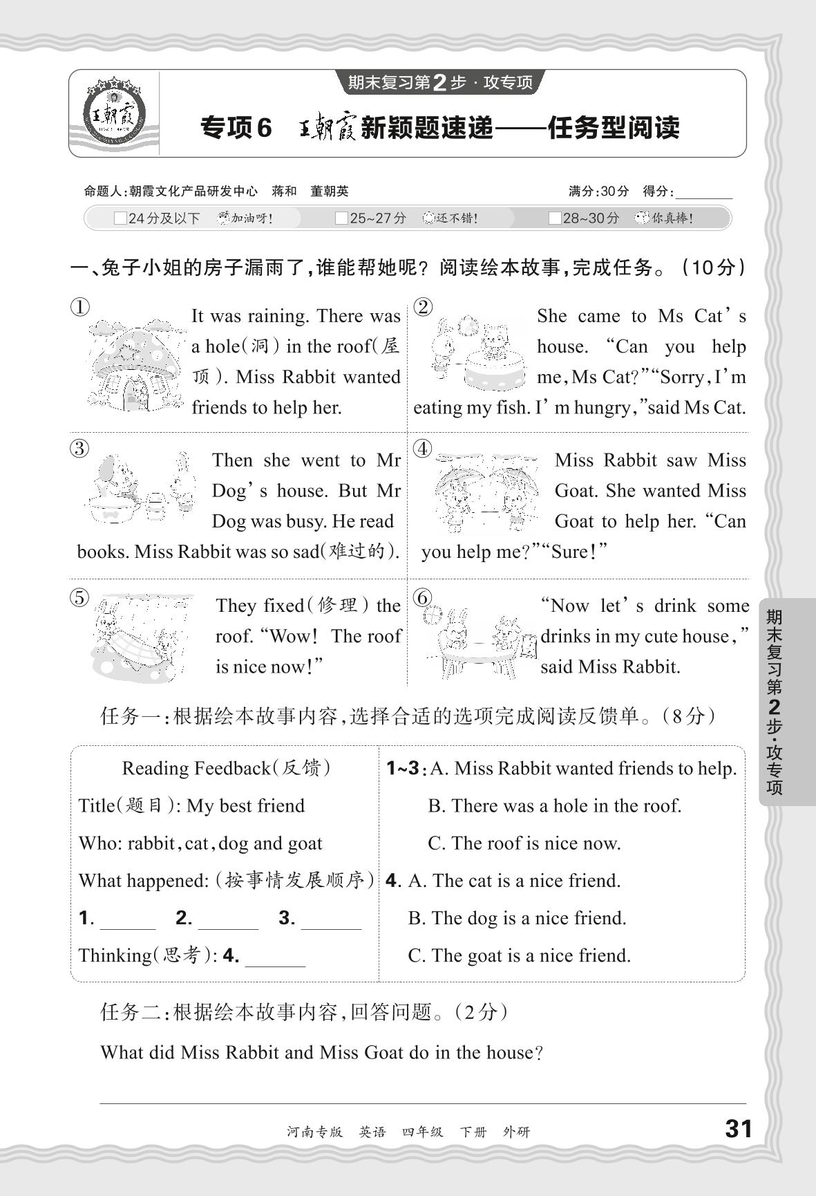 2024春下册四年级英语外研版 期末专项卷河南版·王朝霞新颖题速递——任务型阅读